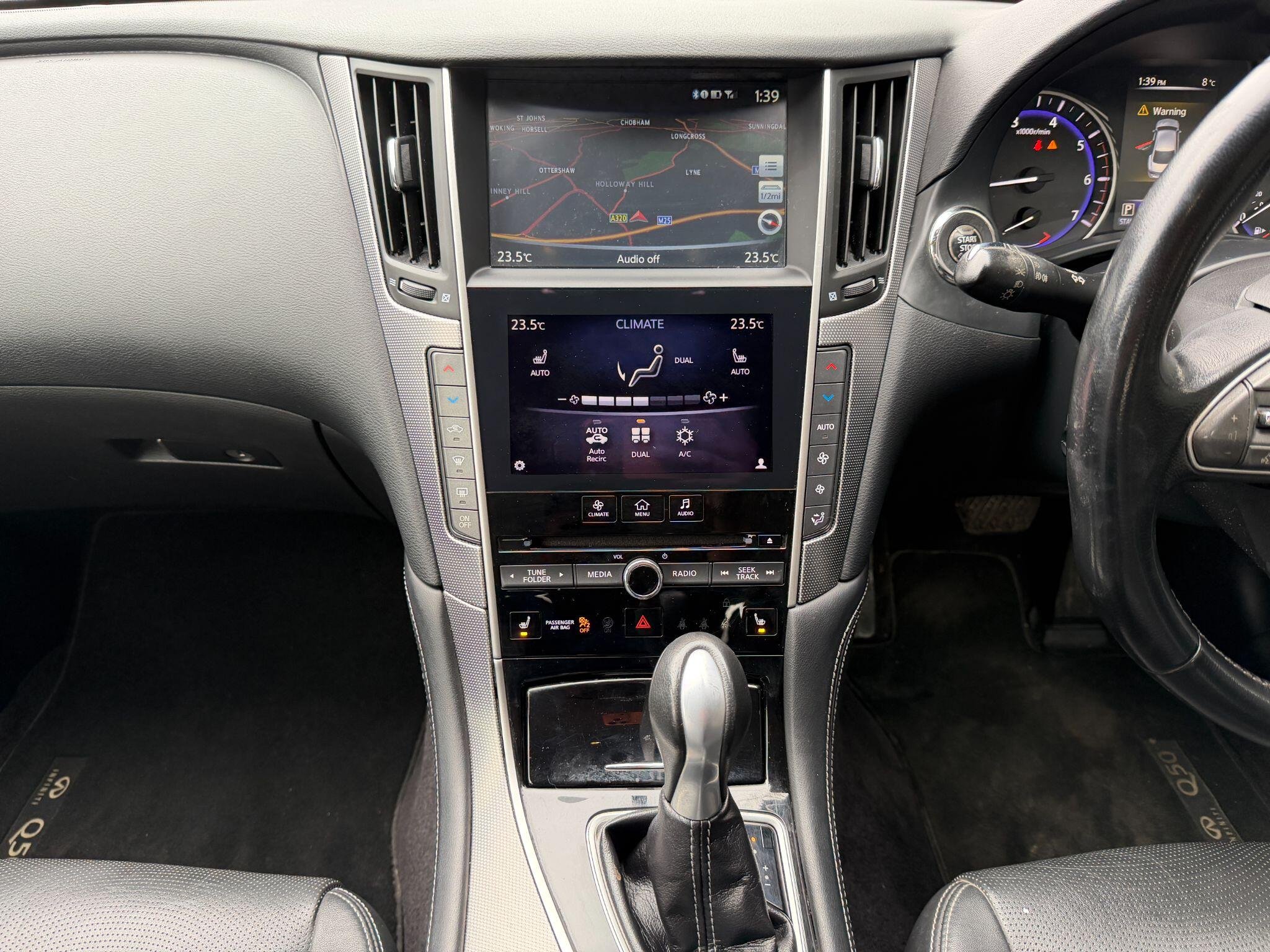 This 2015 Infiniti Q50 d Premium Executive boasts a clear vehicle history, offering you peace of mind. This stylish saloon is powered by an efficient 2.2 litre diesel engine and features the Premium Executive trim. You'll appreciate the convenience of I Key with Smart Access and Enhanced Memory, which includes keyless entry, and the automatic headlight activation for effortless driving. Inside, the power front seat adjustment with memory ensures your perfect driving position is always ready, while Bluetooth audio streaming keeps you connected. Parking is made simpler with rear parking sensors.